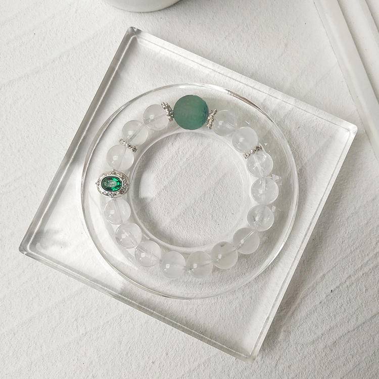 Beads & Fit: Elastic cord; smooth 10 mm rounds with one 13.5 mm focal; comfortable fit for most wrists.